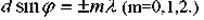 т.е. условие максимумов. При двух щелях между двумя главными максимумами располагается один дополнительный минимум, а между каждыми главными максимумами при трех щелях располагается два дополнительных минимума, при четырех – три. Если диф. реш. состоит из N щелей, то условием главных минимумов является условие