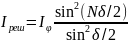, сдвинутых друг относительно друга по фазе на одну и ту же величину δ . Интенсивность при этих условиях равна: