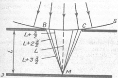 , т.е. освещенность экрана в точке М в k2 раз больше, чем при беспрепятственном распространении света от источника в точку М. Зонная пластинка действует на свет подобно собирающей линзе.