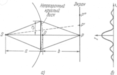 Поместим между источником света S и точкой наблюдения Р непрозрачный диск радиуса