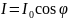 - угол между плоскостью колебаний падающего света и плоскостью поляризатора. Следовательно, интенсивность прошедшего света I определяется выражением