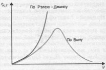 . Ф-ла Р.-Д. согласуется с экспериментальными данными только в области достаточно малых частот и больших температур. В области больших частот она резко с ними расходится. Если попытаться получить закон Стефана-Больцмана, то получается абсурд, т.к. вычисленная с использованием ф-лы Р.-Д. энергетическая светимость черного тела