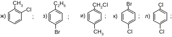 Напишите структурные формулы следующих соединений: а) этилхлорид; б) изопропилбромид; в) винилхлорид; г) аллилхлорид; д) пропаргилбромид; е) 2-метил-3-хлорбутан; ж) 1-бром-3-хлорпропан; з) циклопентилиодид; и) циклогексилбромид; к) метиленхлорид; л) этилиденбромид; м) бензилхлорид н) бензилиденбромид; о) орто-нитрохлорбензол; п) 3-хлорпропен; р) (R)-3-бром-3-фенилоктан; с) (S)-3-бром-1-гексен.