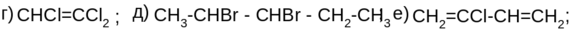 Предложите схемы получения: а) аллилхлорида из пропена; б) 1-. иод-2-хлорпропана из пропена; в) 2-бромбутана из пропина г) 1,2-дибромбутана из ацетилена; д) винилхлорида из этана; е) 1,2-дибромпентана из 1-пентанола; ж) 1-хлор-2-бутанола из 1-бутанола; з) бензилхлорида из бензола; и) 1-фенил-1-хлорэтана из бензола. Напишите уравнения соответствующих реакций.