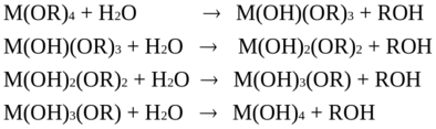 Рис. 1. Химические реакции, протекающие по ходу золь-гель синтеза (алкоксидный метод).