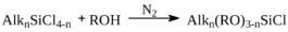 Алкилмонохлоралкоксисиланы пролучают при нагревании с использованием сухого азота для удаления, выделяющегося хлористого водорода [15, 16].