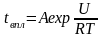 U – кажущаяся (эффективная) энергия активации процесса поликонденсации, кДж/Моль;