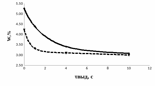 Рисунок 9 - Зависимость массовой доли воды, поглощенной образцом от предварительного времени выдержки