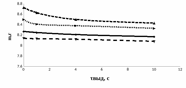 Рисунок 8 - Зависимость массы образца от предварительного времени выдержки
