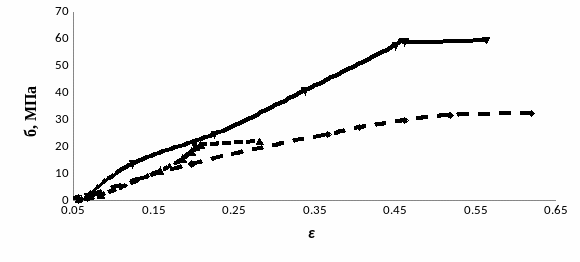 Рисунок 5- Зависимость “Напряжения сдвига от относительной деформации”