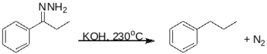 При нагревании гидразонов со щелочами они выделяют азот (реакция Кижнера-Вольфа) и образуются соответствующие углеводороды: