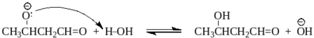 На третьей стадии алкоксид-анион отрывает протон от молекулы воды и превращается в альдоль.