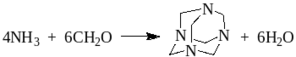 Формальдегид реагирует с аммиаком, образуя гексаметилентетрамин или уротропин: