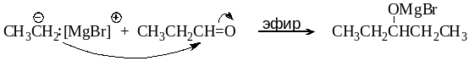 Особая ценность реактивов Гриньяра заключается в их способности создавать новые связи СС. Разница в электроотрицательности между углеродом и магнием (2,5 1,2 = 1,3), обусловливает полярность связи между этими атомами и наличие существенного отрицательного заряда на атоме углерода и положительного заряда на атоме магния. В реакциях реактивы Гриньяра ведут себя как карбанионы. Карбанионы являются хорошими нуклеофилами и легко присоединяются к карбонильной группе. Магнийорганические соединения вступают в реакции нуклеофильного присоединения к альдегидам и кетонам с образованием алкоксидов, гидролизующихся в спирты.