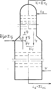 Схема материальных потоков абсорбционно-десорбционной колонны показана на рис. 3.