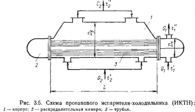 В промышленности для охлаждения абсорбента применяют кожухотрубчатые испарители.