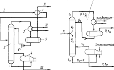 Процесс ректификации осуществляется в ректификационных тарельчатых или насадочных аппаратах колонного типа. Для создания разности температур потоков в нижнюю часть колонны подводят тепло, а из ее верхней части тепло отводят.