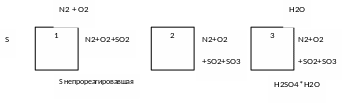 Рис. 9. Структурная блок-схема ХТС: 1 – сжигание серы; 2 – окисление оксида серы (IV) в оксид серы (VI); 3 – абсорбция оксида серы (VI).