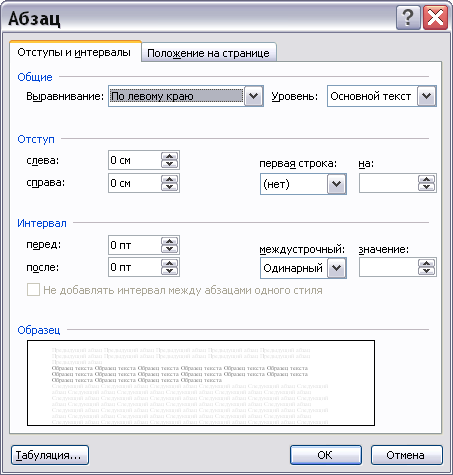 В панель свойств можно ввести образец, иллюстрирующий результат сделанных изменений. Пример - панель свойств Абзац текстового редактора Word.