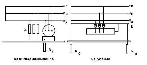 Занулением называется преднамеренное соединение корпусов электрических установок с многократно заземленной нейтралью (нулевым защитным проводником) трансформатора или генератора.