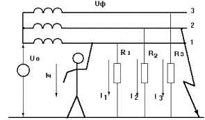 Однофазное прикосновение (прямое) – прикосновение к проводнику одной фазы действующей электроустановки