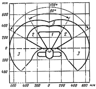 | Зона моторного поля | Органы управления, расположенные в зоне | Критерии частоты использования |