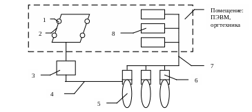 (нижняя схема) рабочего места пользователя ПЭВМ