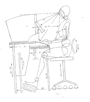Организация рабочего места предусматривает учет размеров характерных частей тела человека (антропометрия), соблюдение закономерностей трудовых движений и перемещений (биомеханика), учет параметров углов и зон обозрения (условия зрительной работы), соблюдение нормируемых параметров санитарно-гигиенической характеристики (охрана труда) (рисунок 14.1).