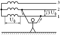 1. Двухфазное (двухполюсное) прикосновение к токоведущим частям.