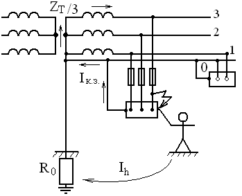 Однофазные замыкания на корпус создают опасные потенциалы на нем и возле него из-за растекания тока с основания на землю. Существуют три способа защиты от поражения: