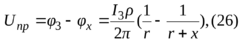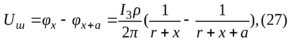 - коэффициент (еще b,d,x) напряжения прикосновения определяется из таблиц(он учитывает форму потенциальной кривой).