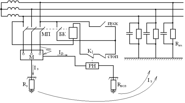 Питание оборудования от специального разделительного трансформатора, который отделяет электрический приемник от первичной разветвленной протяжной сети (с большой емкостью и малым активным сопротивлением).
