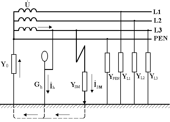 Выражениями (3.3, 3.4) будем пользоваться при определении Ih и Uh для сетей типа IT и TN-C при определенных значениях их параметров.