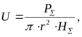 Вычисляется безразмерный параметр U по формуле: