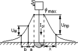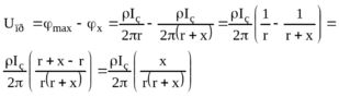 - коэффициент (еще b,d,x) напряжения прикосновения определяется из таблиц(он учитывает форму потенциальной кривой).