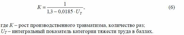 Кроме того, интегральная оценка условий труда позволяет прогнозировать травматизм на предприятии. Рост производственного травматизма на автоматизированных линиях определяется по выражению:
