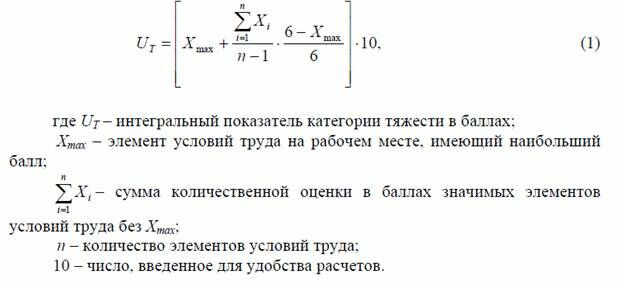3) Рассчитать по формуле (1) интегральную оценку элементов условий труда до и после внедрения мероприятий, и определить категорию тяжести труда по таблице 1.