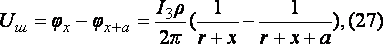 - коэффициент (еще b,d,x) напряжения прикосновения определяется из таблиц(он учитывает форму потенциальной кривой).