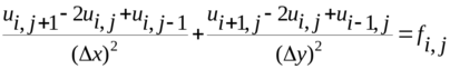 , получаем пятиточечную разностную схему для внутренних узлов прямоугольника