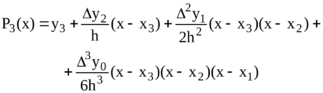 При расчётах и алгоритмизации вычисления интерполяционного полинома применяется таблица конечных разностей: