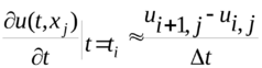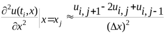 Для численного решения начально-краевых задач для ДУЧП используется метод конечных разностей, основанный на приближенных формулах для первой и второй производной функций. При этом начально-краевая задача заменяется на сеточные уравнения, связывающие значения искомой функции в узлах сетки.