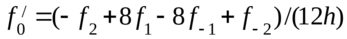 Наиболее употребительна в этом случае симметричная разностная схема ( аналог метода парабол при численном интегрировании ):