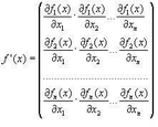 Будем считать функции fi(x), входящие в систему (1) непрерывно дифференцируемыми в некоторой окресности решения x¯. Введем для системы функций f1,f2,...,fn матрицу Якоби