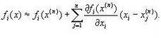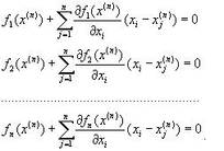 Предположим, что исходя из начального приближения x(0) к решению x¯ построены приближения x(1), x(2),...,x(n).Заменим в системе (1) каждую функцию fi (i=1,n¯)линейной частью ее разложения по формуле Тейлора в точке x(n):