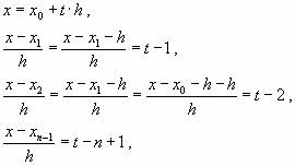 Полученное выражение может аппроксимировать данную функцию y = f(x) на всем отрезке изменения аргумента [x0, xn]. Однако, более целесообразно (с точки зрения повышения точности расчетов и уменьшения числа слагаемых в полученной формуле) ограничиться случаем t < 1, то есть использовать эту формулу для x0, x, x1. Для других случаев вместо x0 принять xi, если xi x xi+1 при i = 0,n-1.
