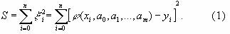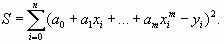 Параметры a0,a1,...,am будем искать при условии минимума функции S = S(a0,a1,...,am).
