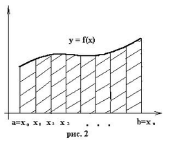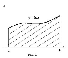 Выведем простейшие квадратурные формулы, исходя из геометрических соображений. Известно, что интеграл (1) - площадь криволинейной трапеции, ограниченная сверху функцией f(x) (рис.1).