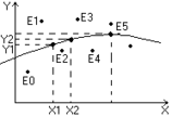 После этого проверяется линия, соответствующая внешнему виду (x) и наиболее близко проходящая от заданных точек: