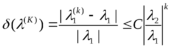 Теорема: Пусть задана матрица А достаточно простой структуры, для кот. |1|>|2|≥|3|≥…≥|m|. Предположим что разложение х(0) по базису собственных векторов х0=С1е1+ С2е2+…+ Сmеm происходит с С1≠0. Тогда |k1| → |1|k→∞и справедлива следующая оценка погрешности: