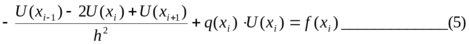 Будем считать, что ф-ия Uh во всех узлах сетки Wh удовлетворяет ур. (5). В этом случае ур. (5) явл. разностным ур. аппроксимации краевой задачи (1) с ограничением (2), фактически явл. системой линейной алгебры уравнений. Преобразуем ур. (5): -Ui-1 +Ui(2+h2qi)-Ui+1=h2fi.